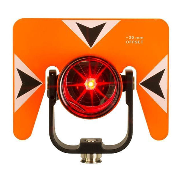 Отражатель SET АК-18М однопризменнный с импульсной (диодной) подсветкой и визирной маркой. Призма диаметром 64 мм. Универсальное резьбовое крепление – 5/8″. Корпус призмы выполнен из пластика. Визирная марка металлическая. Поправочный коэффициент: К = 0 мм/-30 мм.