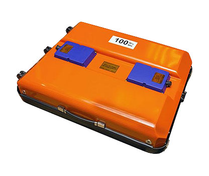 Низкочастотный глубинный комплект с антенным блоком АБ-100М3 позволяет работать на глубинах до 14 метров (в зависимости от типа грунта). Центральная частота — 100 МГц, при этом разрешающая способность от 0,45 м. Предназначен для работы в полевых, неблагоприятных условиях.