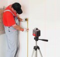Удобная разметка. Уровень проецирует три плоскости: одну горизонтальную и две вертикальных линии. Горизонтальный луч имеют развертку 360°. Линию для разметки будет видно в любой точке. Больше нет необходимости вращать прибор. С помощью вертикальных линий пересекающихся под прямым углом (угол между вертикальными лазерными плоскостями 90°) можно быстро планировать деление помещений, строить перегородки, производить укладку напольной плитки и т.д. Лазерные линии покажут положение будущих стен. Меняя положение уровня можно быстро оценить размеры планируемого помещения.