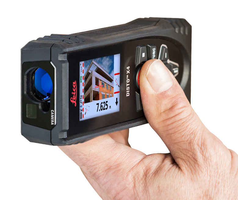 Дальномер Leica Disto X4 оснащен датчиком наклона. Благодаря ему можно выровнять дальномер и исключить погрешность при определении расстояния, а также вычислить высоту объекта на основе длин двух сторон треугольника и углу между ними.