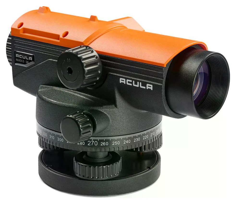 Оптический нивелир NIVEX E-38 от производителя профессиональной оптики Accuracy Laboratory (ACULA). Активно используется в съёмке местности, проектировании, строительстве зданий и прокладке дорог. Обладает высокой точностью 1мм на километр двойного хода. Кратность данной модели 38Х.
